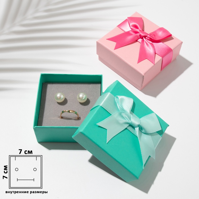 Коробочка подарочная под набор «Тиффани» с крупным бантом, 5×8×2.5 см, вставка МИКС, бирюзовый