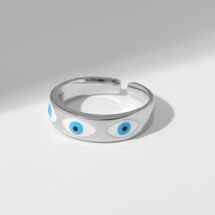 Кольцо «Оберег» глаз, ряд, цвет бело-голубой в серебре, безразмерное