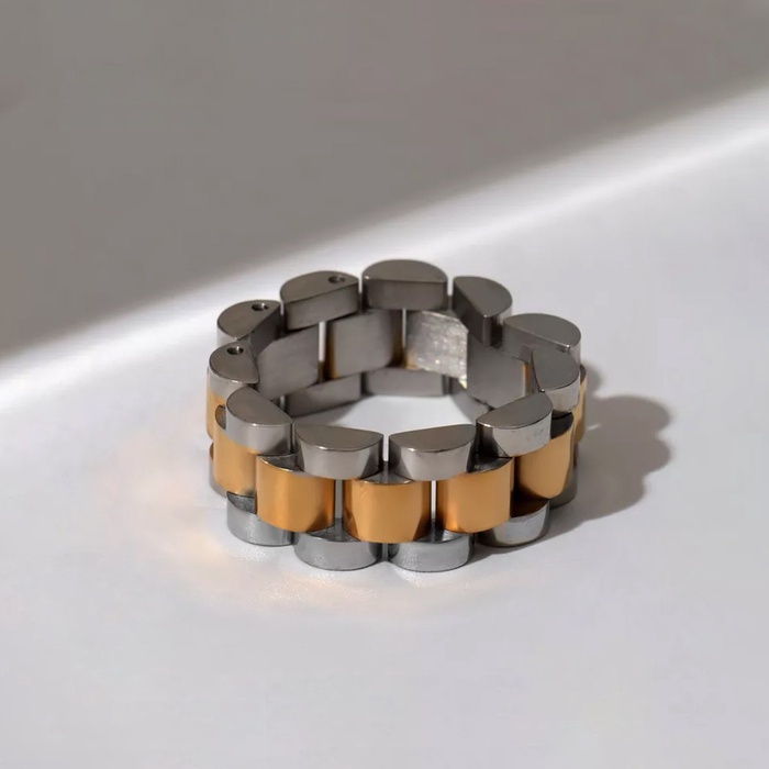 Кольцо «Стальное» механизм, цвет золото-серебряный, 21 размер