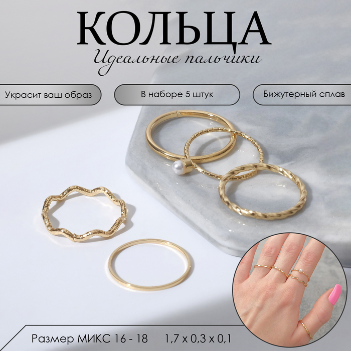Кольцо набор 5 штук «Идеальные пальчики» искушение, белое в золоте