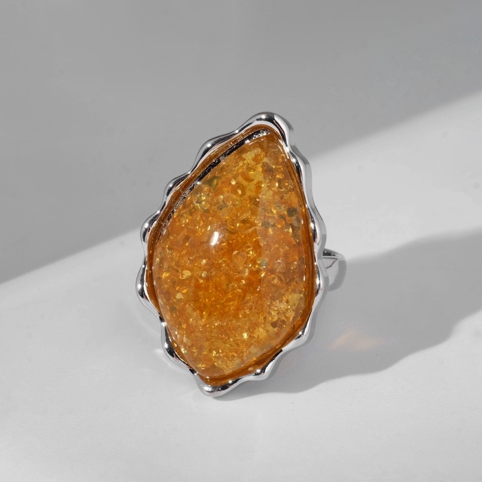 Кольцо «Изыск» ромб янтарный, цвет коричневый в серебре, безразмерное