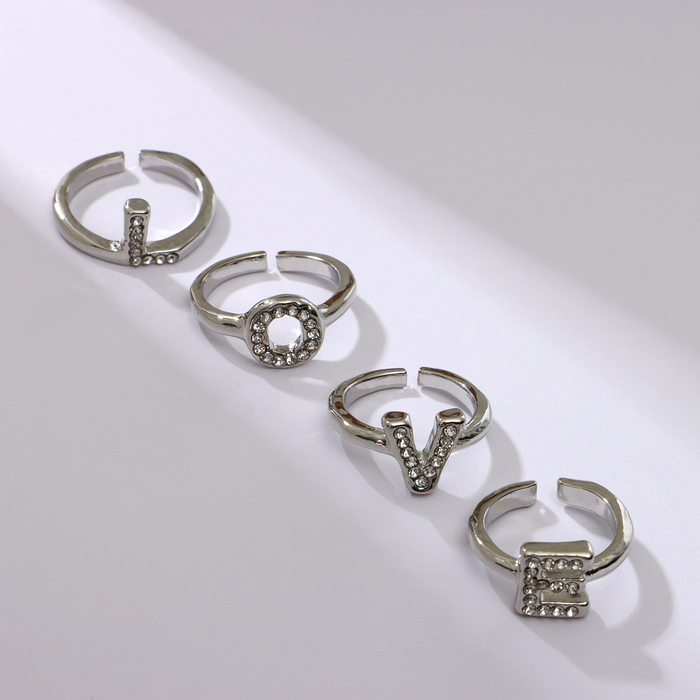 Кольцо набор 4 шт «Ассорти» love, цвет серебро, безразмерное