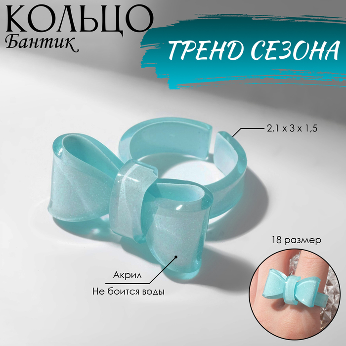 Кольцо «Бантик» объёмный, цвет голубой, размер 18