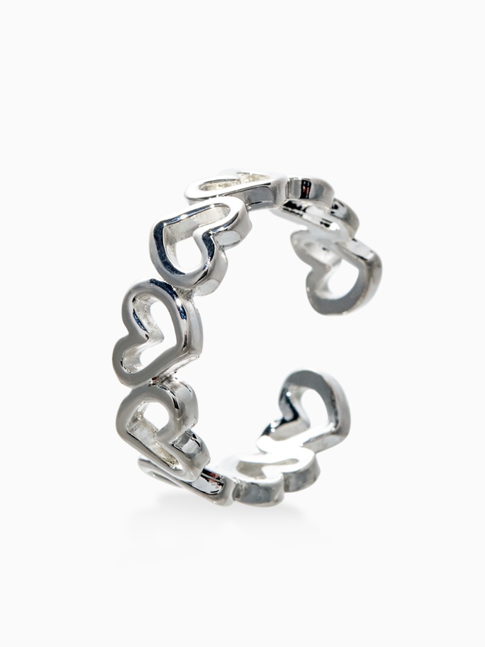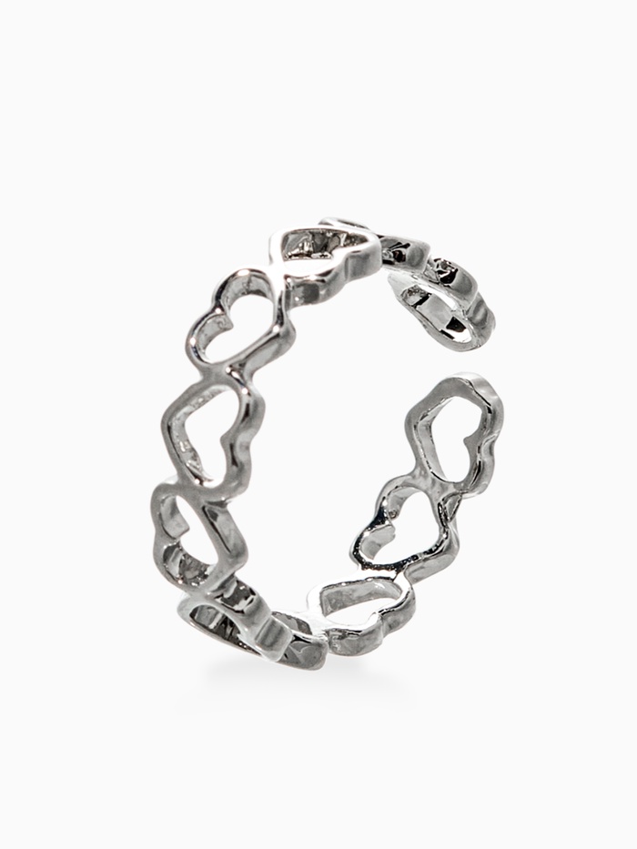 Кольцо «Цепь из сердечек», цвет серебро, безразмерное