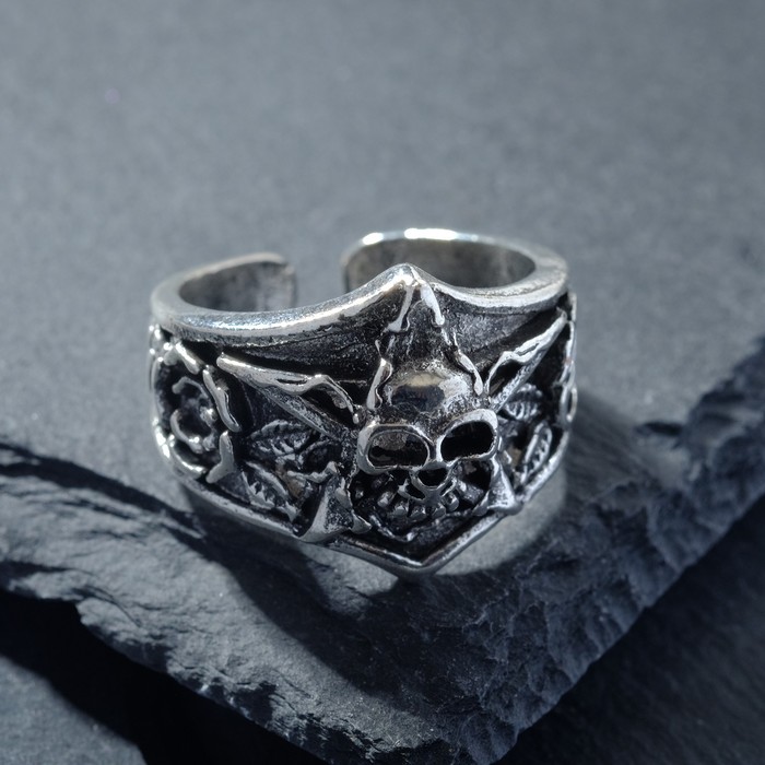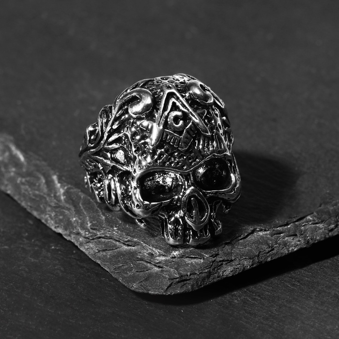 Кольцо «Перстень» череп с символикой, цвет чернёное серебро, безразмерное