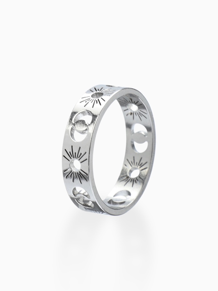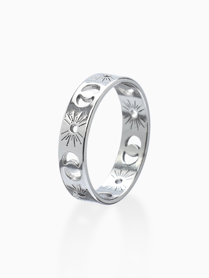 Кольцо «Солнце и полумесяцы», цвет серебро 18 размер