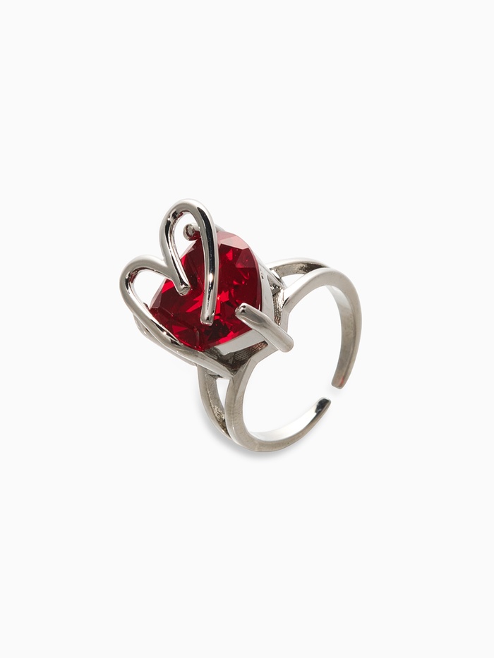 Кольцо «Сердце» с камнем, цвет красный в серебре, безразмерное