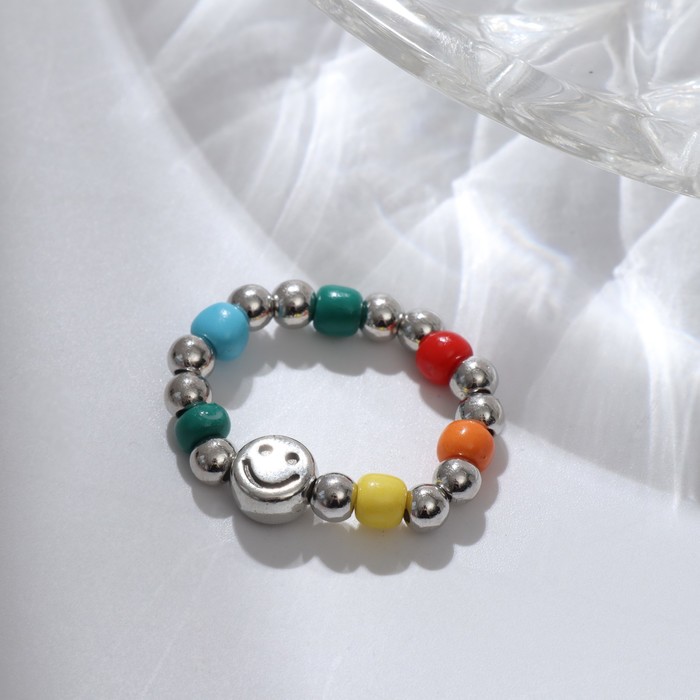 Кольцо «Смайлик», цветное в серебре, 17 размер