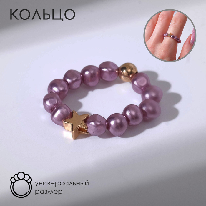 Кольцо бисерное «Звезда», золотисто-фиолетовое, безразмерное