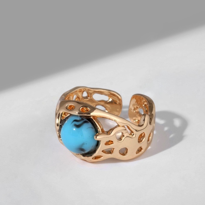 Кольцо с камнем «Рельеф», безразмерное, цвет золото