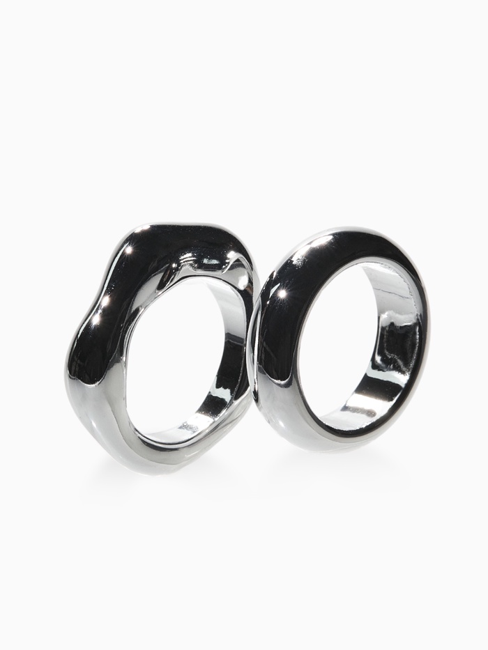 Кольцо пластик «Стиль», набор 2 шт. размер 17, цвет серебро