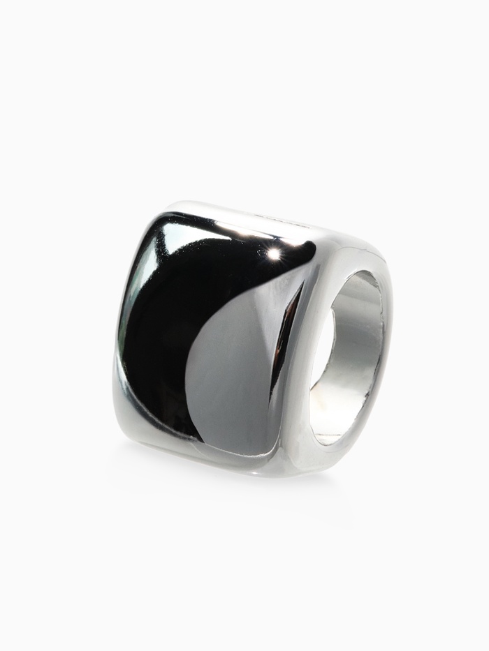 Кольцо крупное «Объемный квадрат», размер 17, пластик, цвет серебро