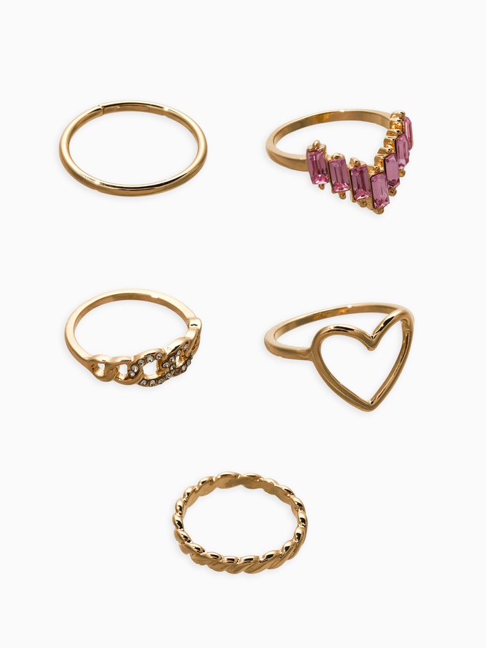Набор колец 5 шт "Новый стиль" сердца,бесконечность, р-р МИКС, цвет бело-розовый в золоте