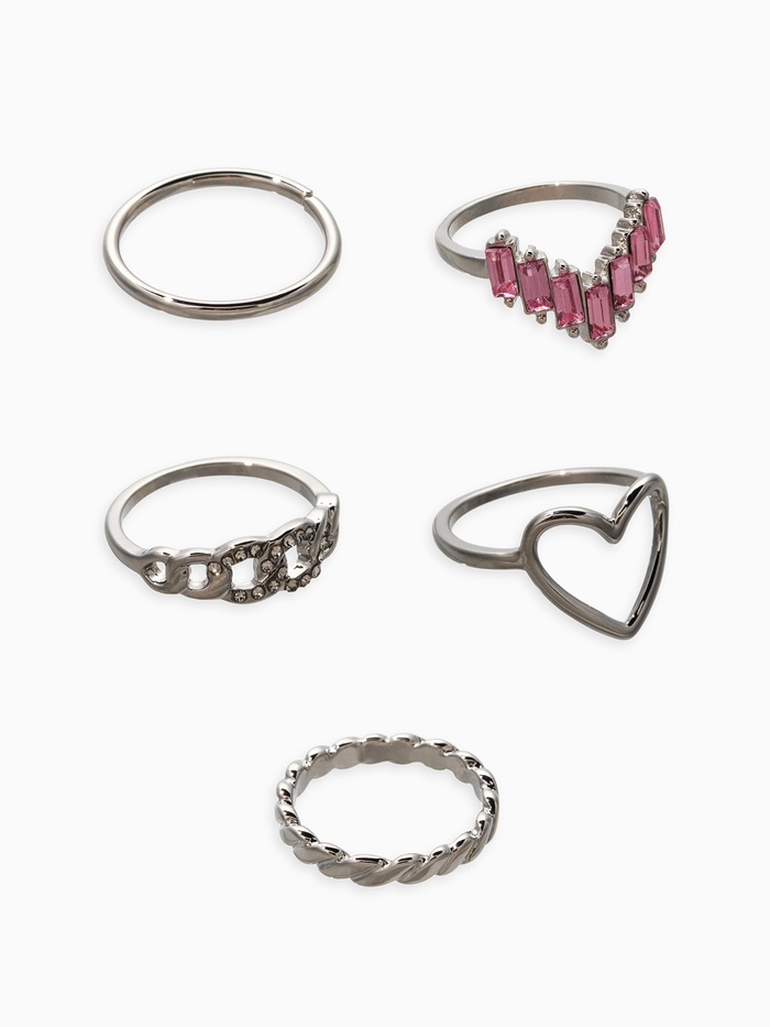 Набор колец 5 шт "Новый стиль" сердечки, размер МИКС, цвет серебро