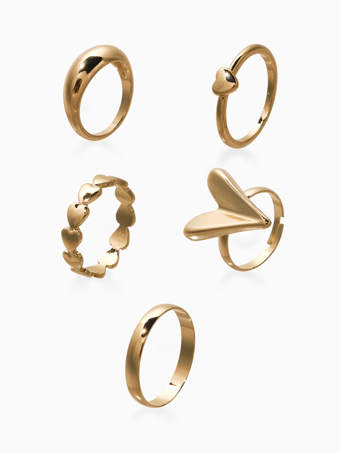 Набор колец 5 шт "Новый стиль" сердечки, размер МИКС, цвет золото