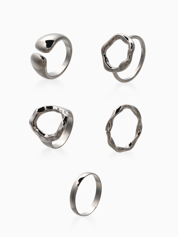 Набор колец 5 шт "Новый стиль" мятый, размер МИКС, цвет серебро