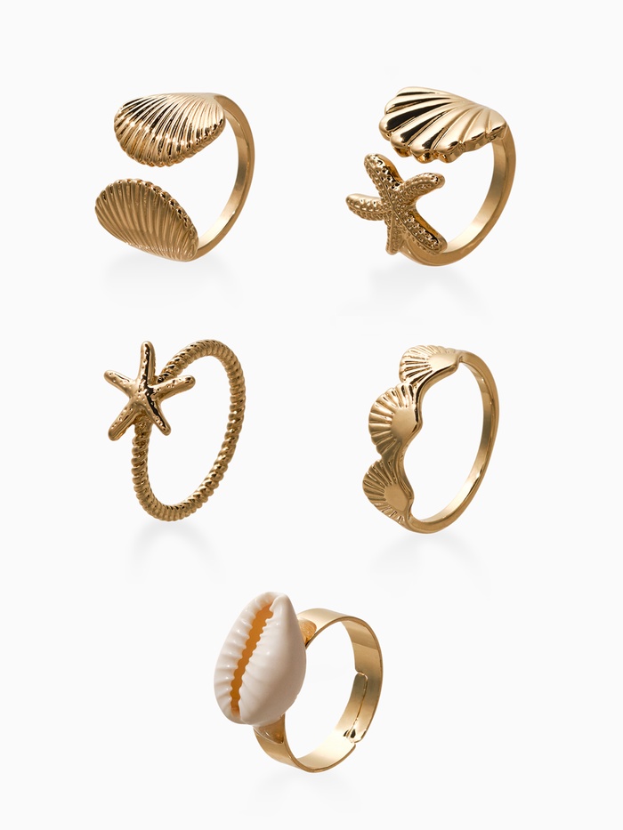 Набор колец 5 шт "Новый стиль" ракушки, размер МИКС, цветные в золоте
