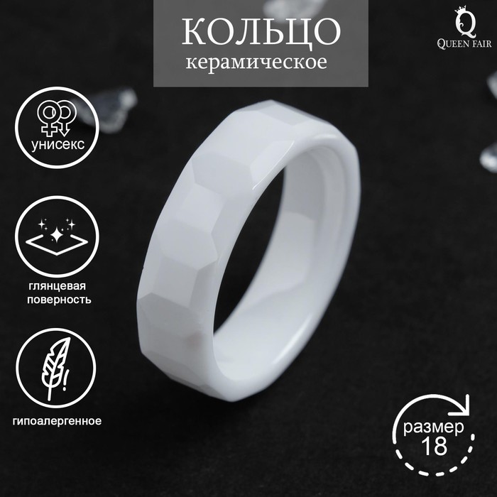 Кольцо керамика «Минимал» огранка прямоугольник, 6 мм, белое, 18 размер