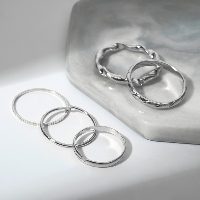 Кольцо набор 5 штук «Идеальные пальчики» геометрия, цвет белый в серебре