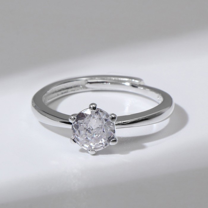 Кольцо «Классика» кристалл, цвет белый в серебре, безразмерное