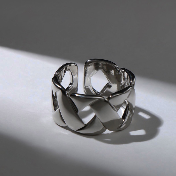 Кольцо «Цепь» квадратные звенья, цвет серебро, безразмерное