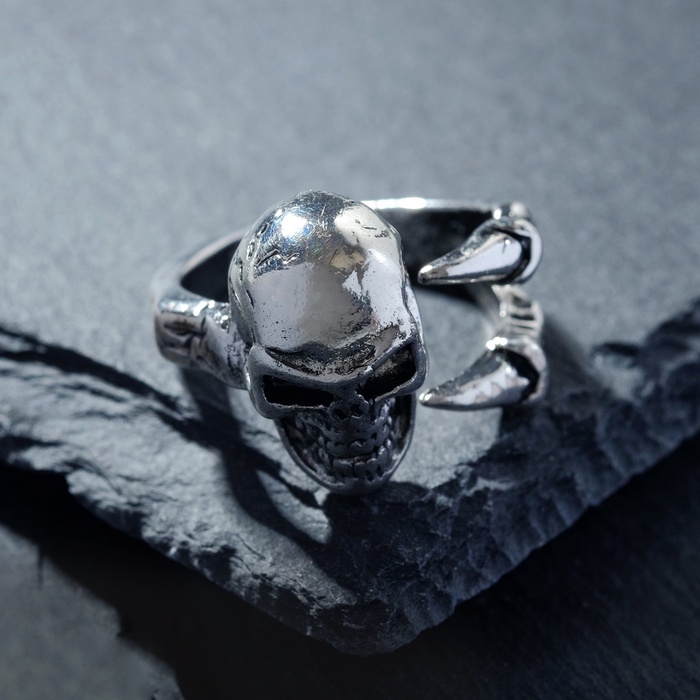 Кольцо «Перстень» череп, цвет чернёное серебро, безразмерное