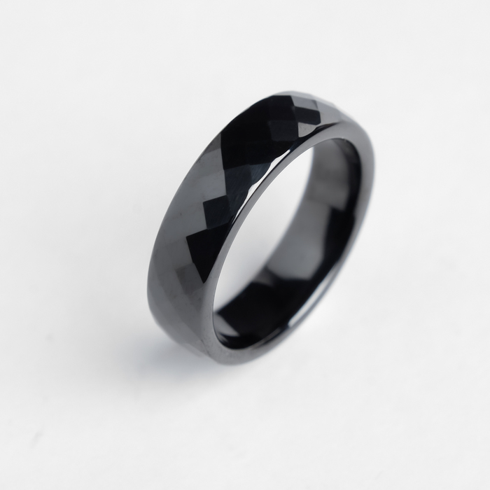 Кольцо керамика «Минимал» огранка ромб, 6 мм, чёрное, 19 размер