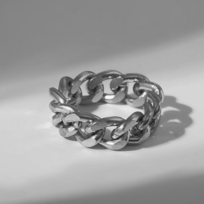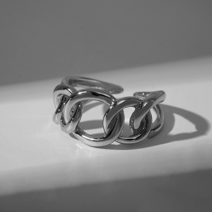 Кольцо «Цепь» крупные звенья, цвет серебро, 20 размер