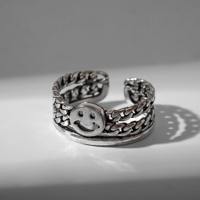 Кольцо «Смайлик» тренд, цвет чернёное серебро, безразмерное