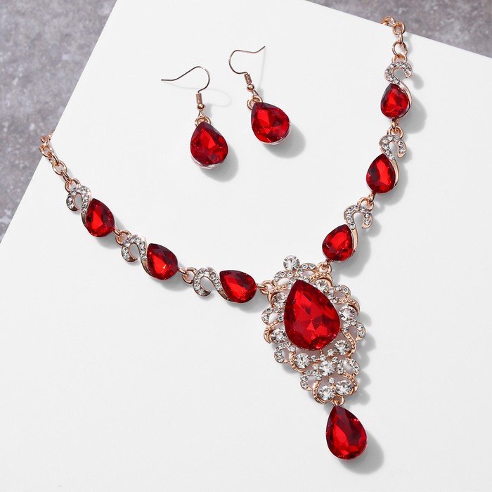 Набор 2 предмета: серьги, колье «Изумление» цветение, цвет красно-белый в золоте, 42 см
