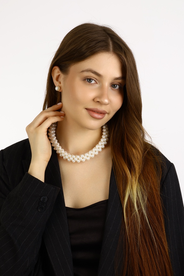 Набор 2 предмета: серьги, колье «Жизель» сплошная нить, цвет белый, 42 см
