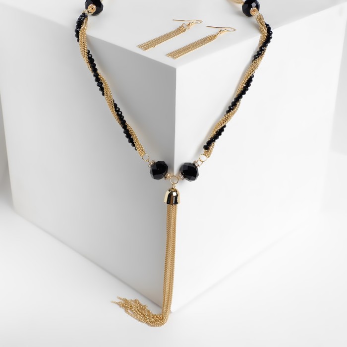 Набор 2 предмета: серьги, бусы «Унисон» накрученность, чёрный в золоте, 60 см