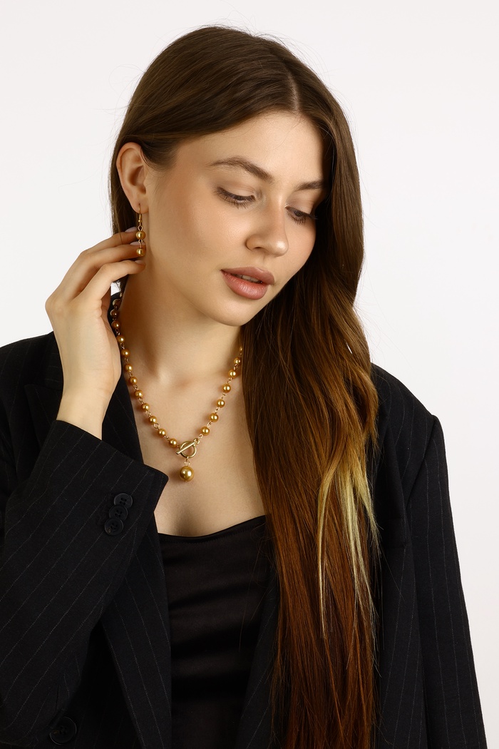 Набор 2 предмета: серьги, колье «Габриела» мелкие жемчужины, цвет светло-коричневый в золоте, 45 см