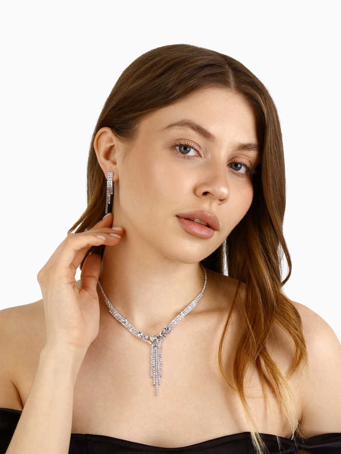 Набор 2 предмета: серьги, колье «Лёд» кристаллы, цвет белый в серебре, 48см