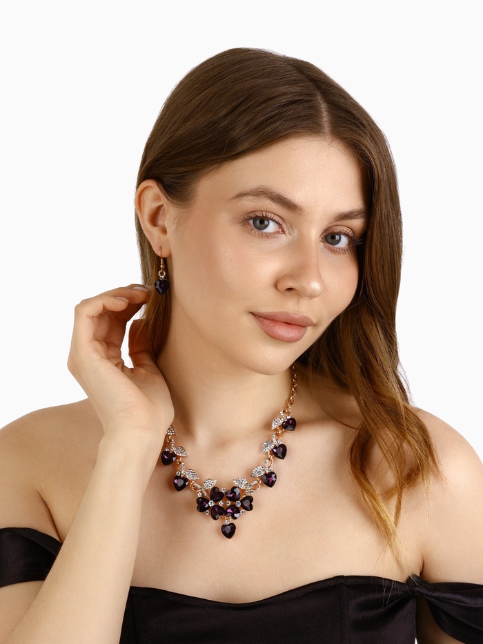 Набор 2 предмета: серьги, колье «Вернисаж» сердце и цветы, цвет бело-фиолетовый в золоте, 42 см
