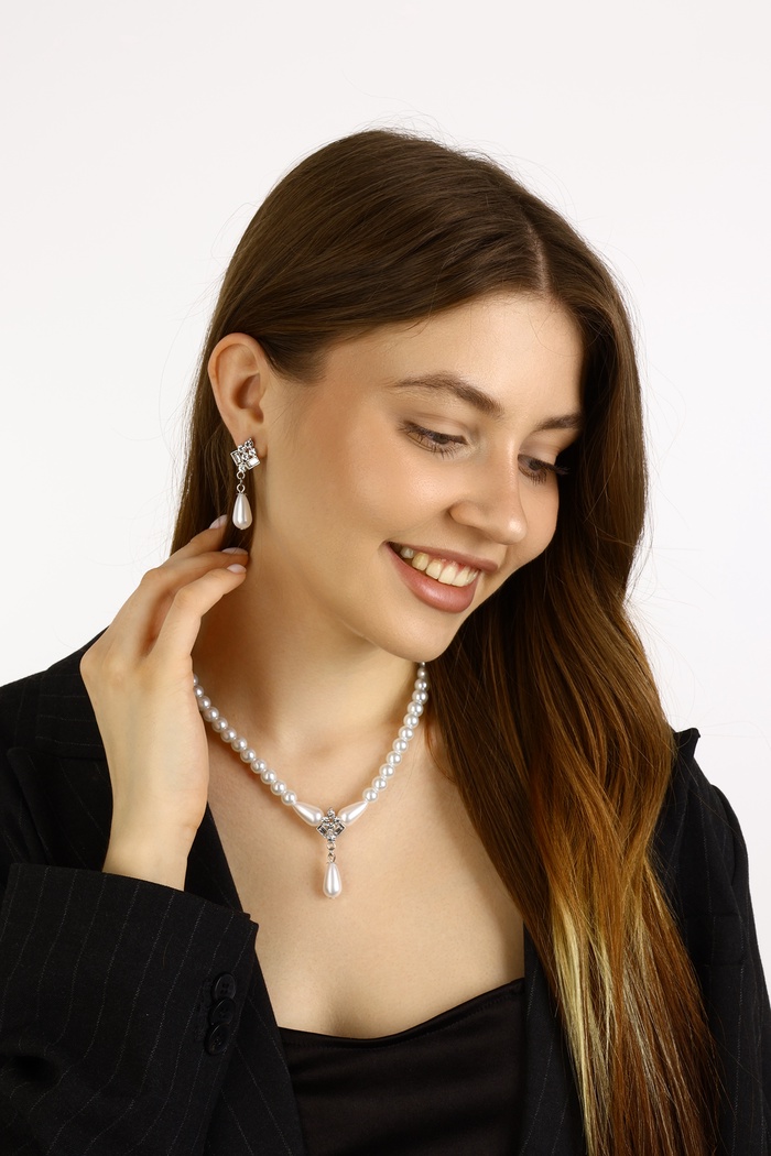 Набор 2 предмета: серьги, колье «Антуанетта» гранж, цвет белый в серебре, 40 см