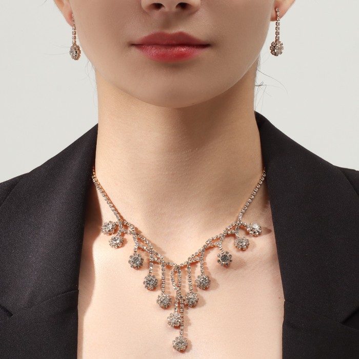 Набор 2 предмета: серьги, колье «Элит» водопад, цвет белый в золоте, 30 см
