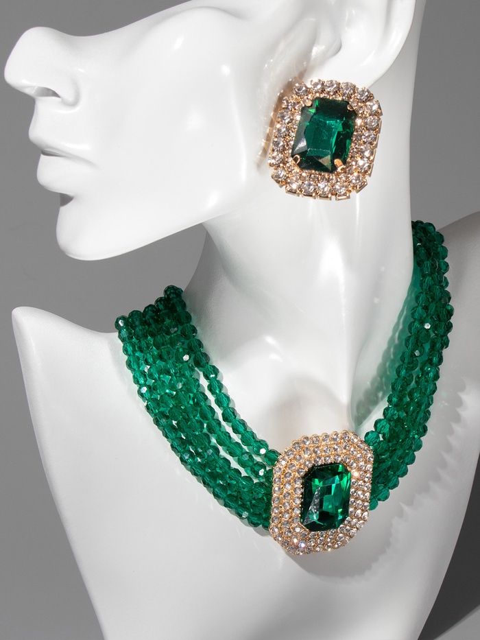 Набор 2 предмета: серьги, колье «Роскошь» крупный камень, цвет зелёный в золоте, 42 см