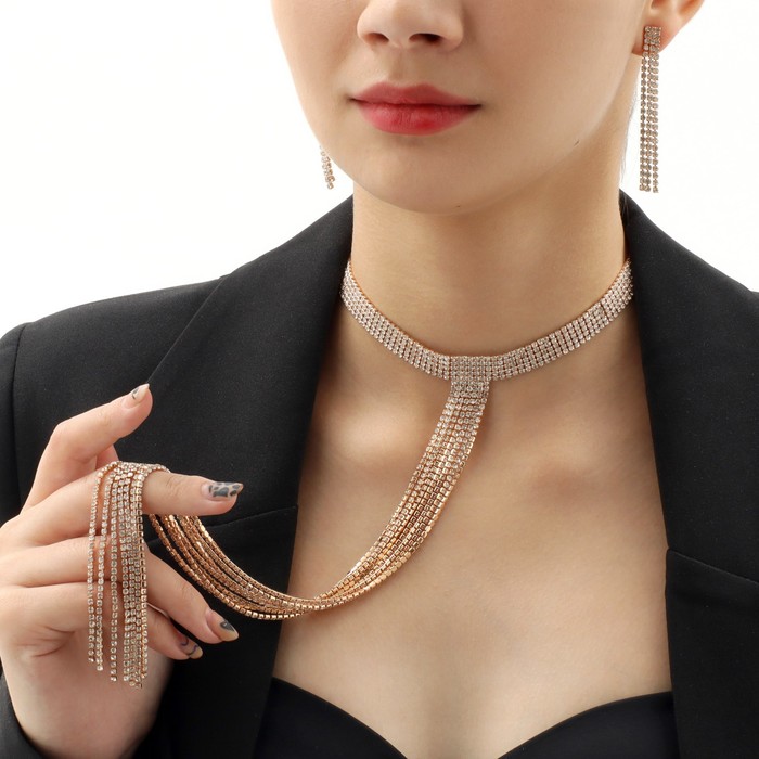 Набор 2 предмета: колье-чокер, серьги «Блеск», белый в серебре