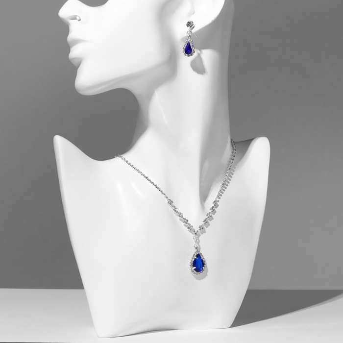 Гарнитур 2 предмета: кулон, серьги «Элеганс» капля миниатюрная, цвет бело-синий в серебре, 30 см