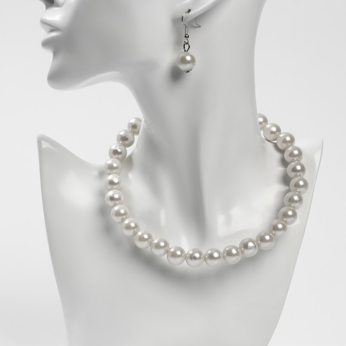 Набор 2 предмета: серьги, колье «Жемчужный рай», d=1,2 см, цвет белый в серебре