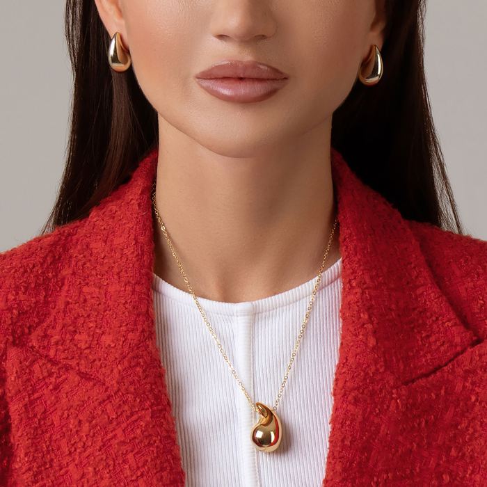 Гарнитур 2 предмета: кулон, серьги «Капля», цвет золото, 40 см