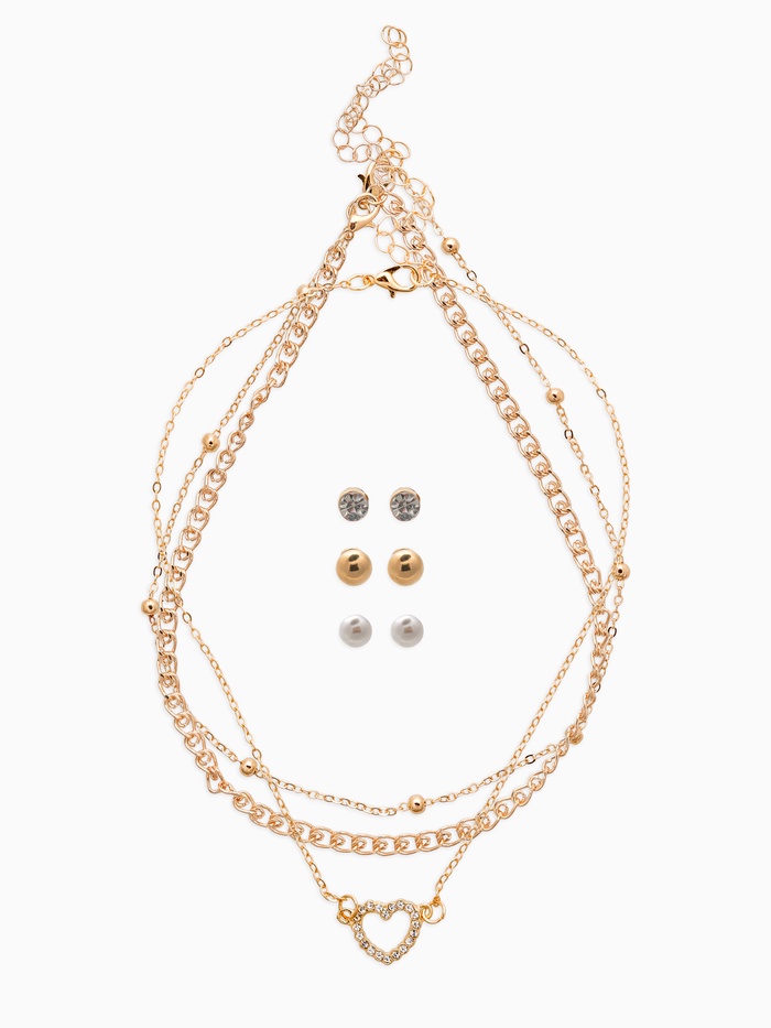Набор 2 предмета: 3 колье, 3 пары пусет «Эстетика» сердце, цвет белый в золоте, 32 см
