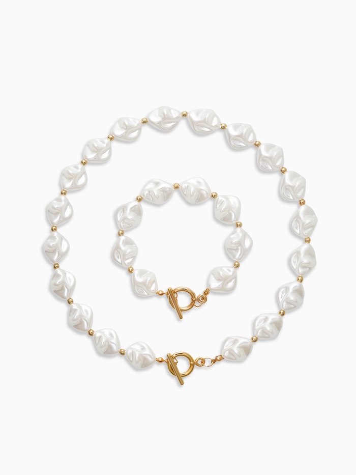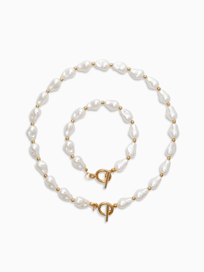Набор 2 предмета: бусы, браслет «Жемчуг барочный. Капля», 40/18 см, белый в золоте