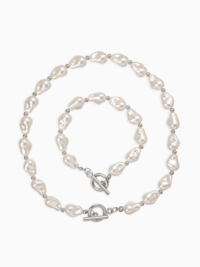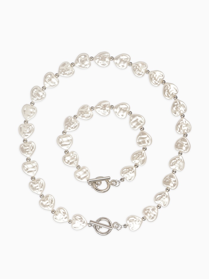 Набор 2 предмета: бусы, браслет «Жемчуг барочный. Сердечки», 40/18 см, белый в серебре