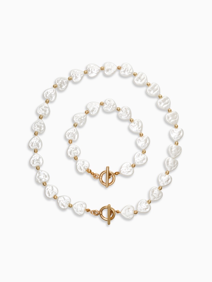 Набор 2 предмета: бусы, браслет «Жемчуг барочный. Сердечки», 40/18 см, белый в золоте