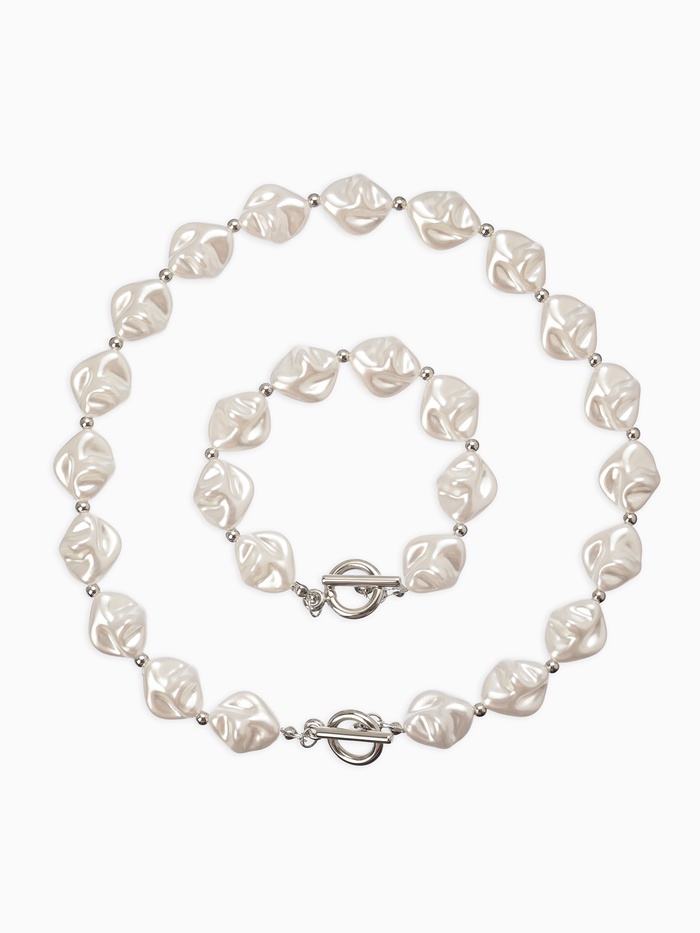 Набор 2 предмета: бусы, браслет «Жемчуг барочный. Ромб», 40/18 см, белый в серебре