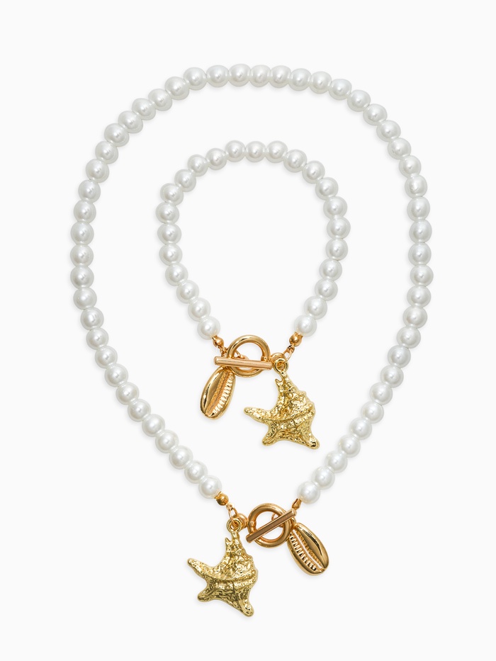 Набор 2 пред-та: бусы.браслет "Жемчуг", звезда, цвет белый в золоте L=18/42см №6