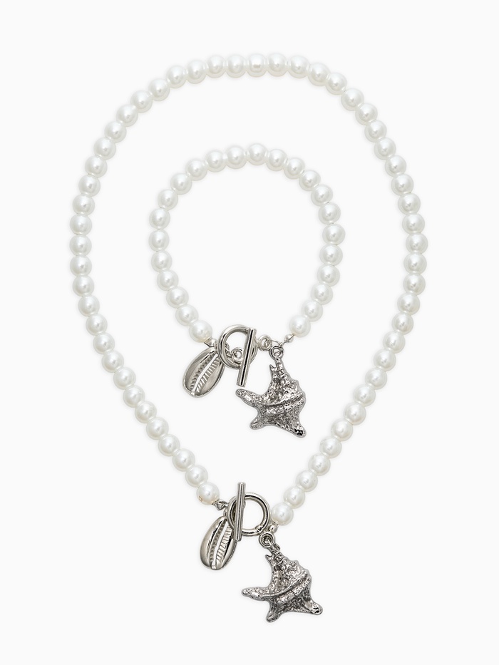 Набор 2 пред-та: бусы.браслет "Жемчуг", звезда, цвет белый в серебре L=18/42см №6