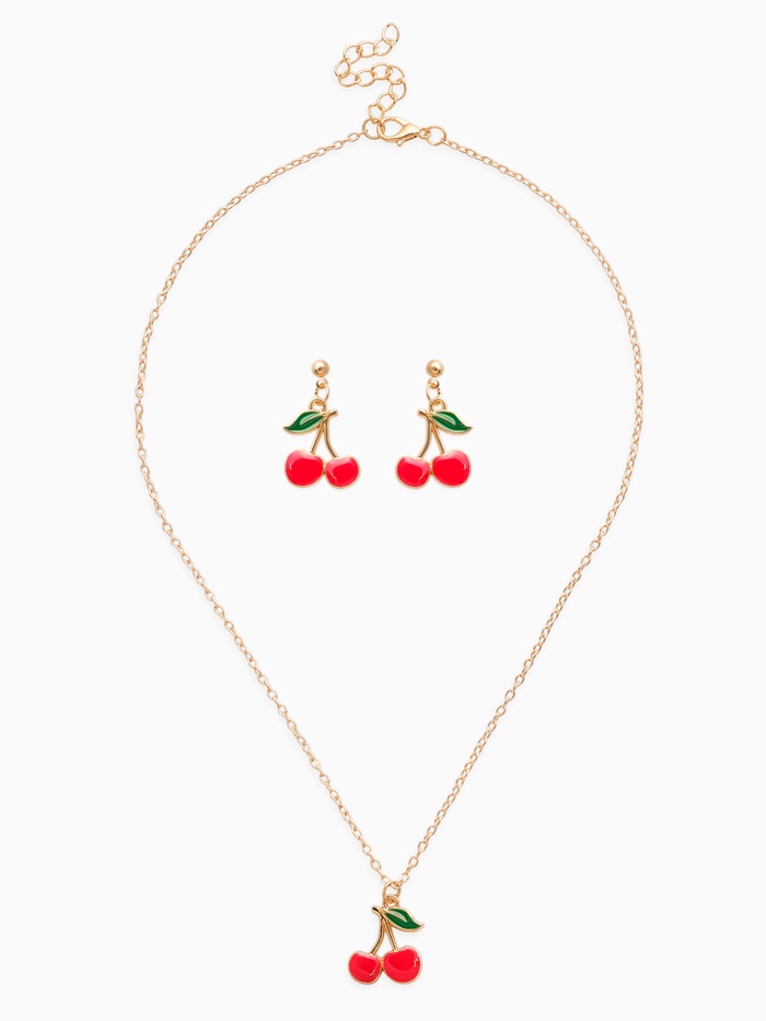 Набор 2 предмета: серьги, кулон «Вишенки», 44 см, красный в золоте